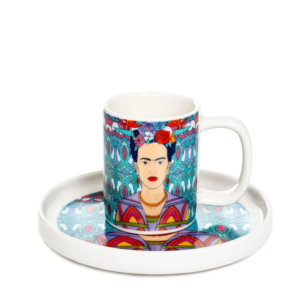 - W Komplecie Spodek I Filiżanka Ozdobione Portretem Fridy Kahlo