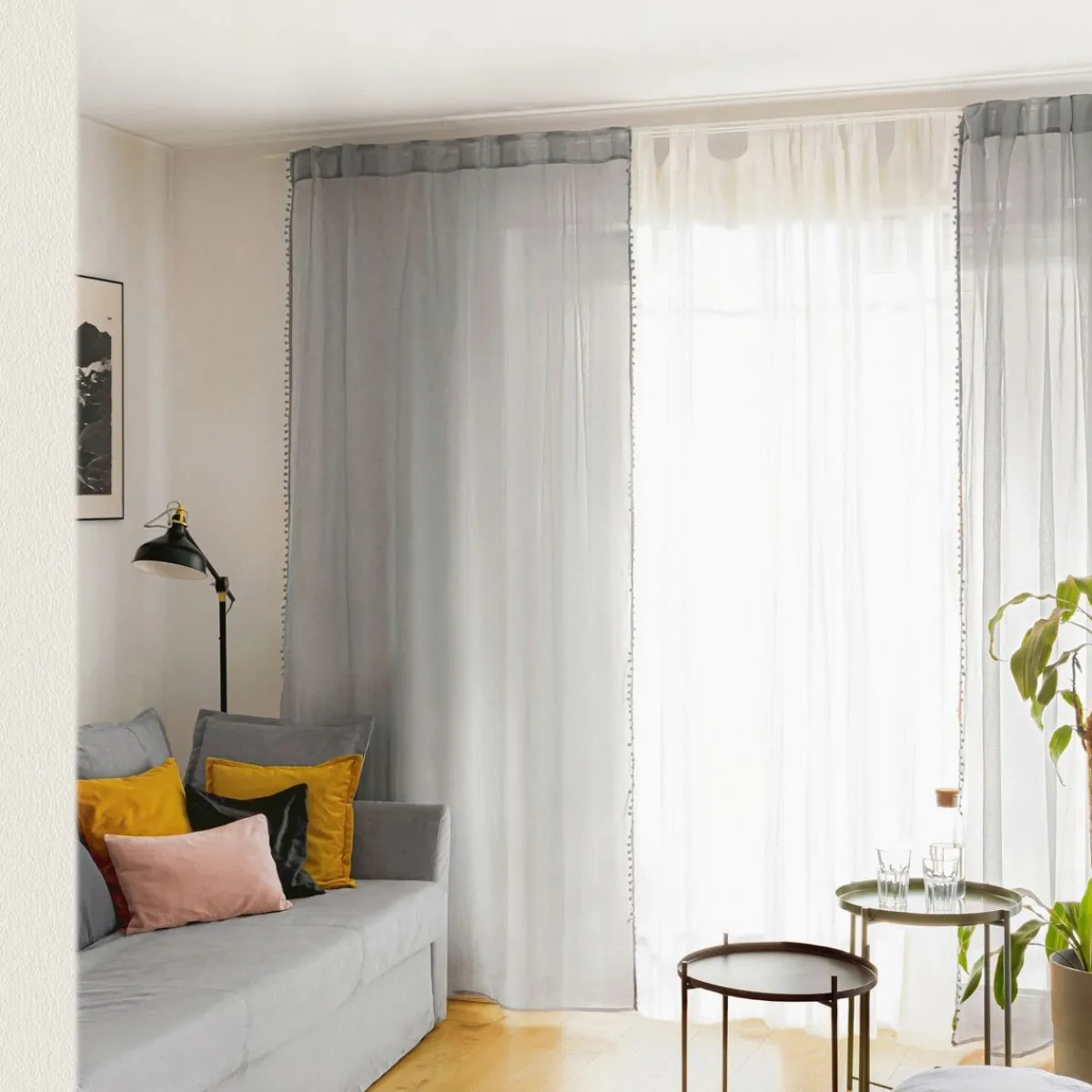 HOMLA Firanka Adi Z Pomponikami Szara 140X250 Cm