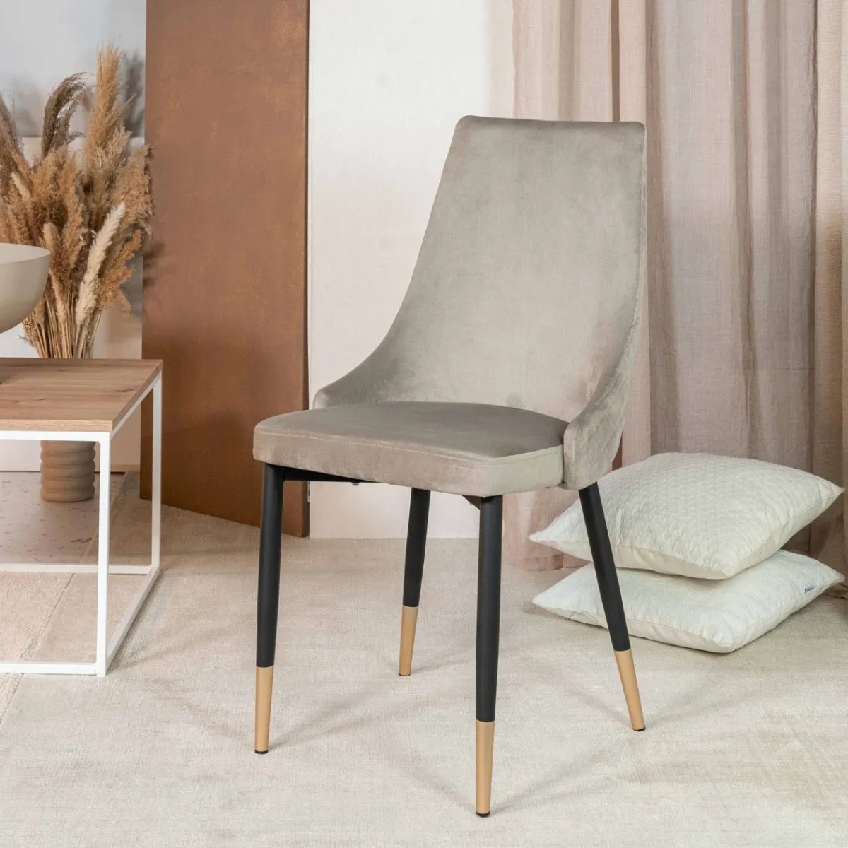 Krzesło Logan Spodoba Się Osobom, Które Uwielbiają Minimalizm W Eleganckim Wydaniu. Stonowana Kolorystyka I Nieskomplikowana Bryła Krzesła To Połączenie, Które Wpasuje Się W Nowoczesne I Minimalistyczne Przestrzenie, A Dzięki Złotym Elementom Także We Wnętrzach Glamour. Ozdobne Pikowanie Welurowej Tapicerki Podkreśla Szykowny Charakter Produktu I Sprawia, Że Będzie On Stanowić Istotny Element Aranżacji.Cechy Charakterystyczne