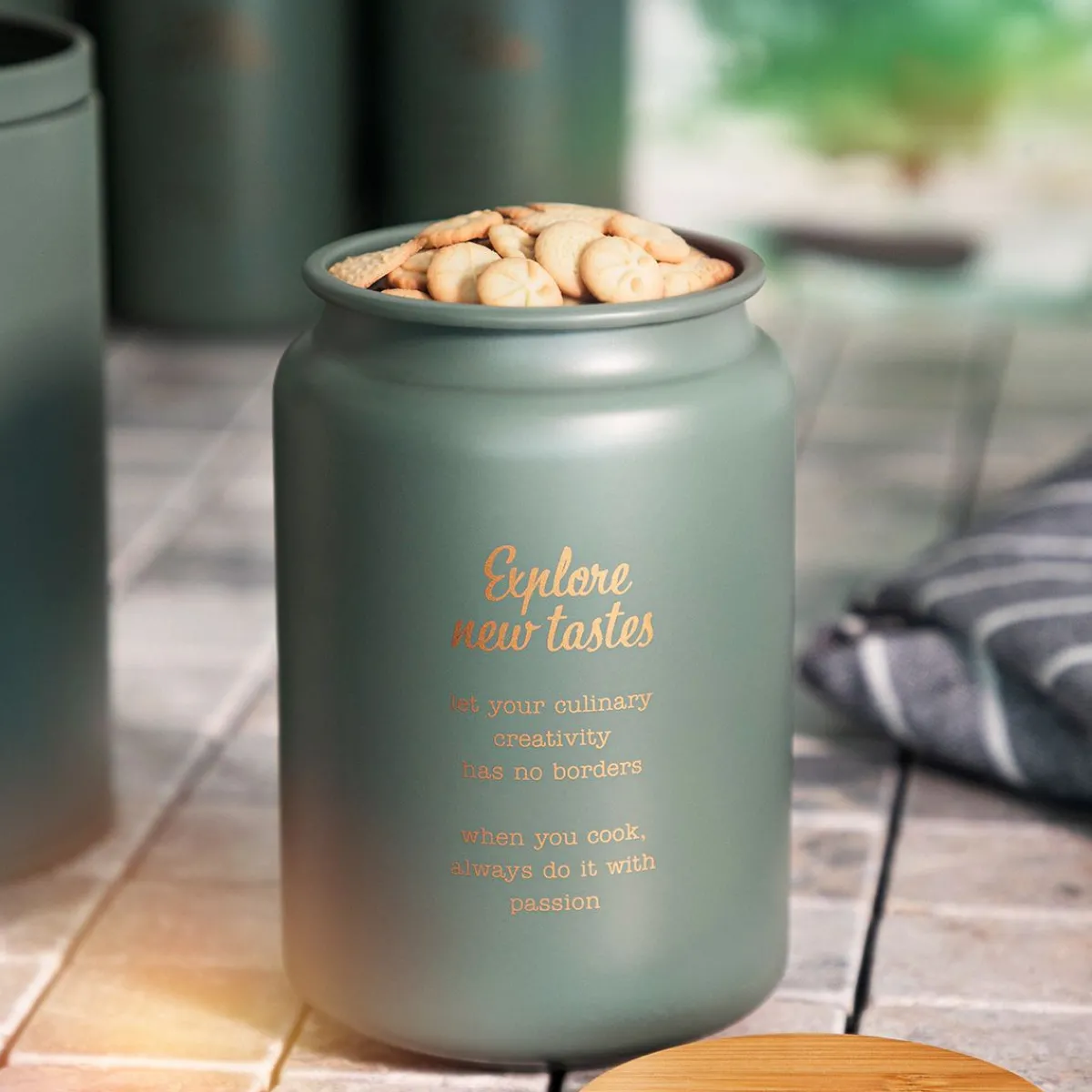 - Metalowy Pojemnik Z Drewnianą Pokrywką