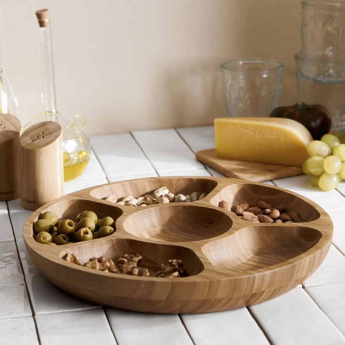 HOMLA Polmisek Bambou Bambusowy Z Przegrodkami 32X4 Cm