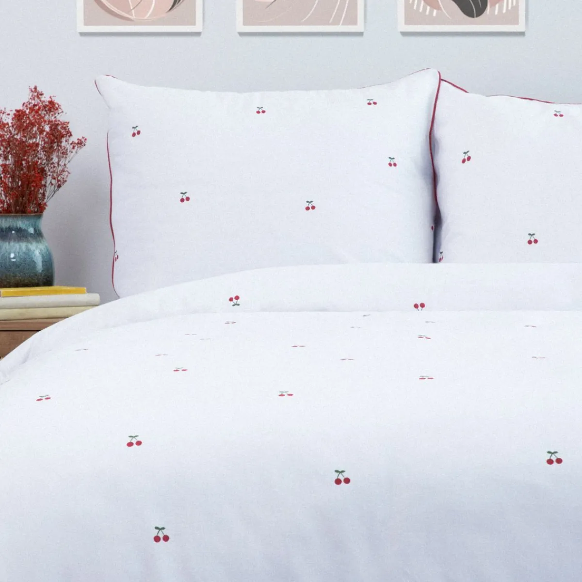- Uroczy Wzór W Wiśnie I Ozdobna Czerwona Lamówka