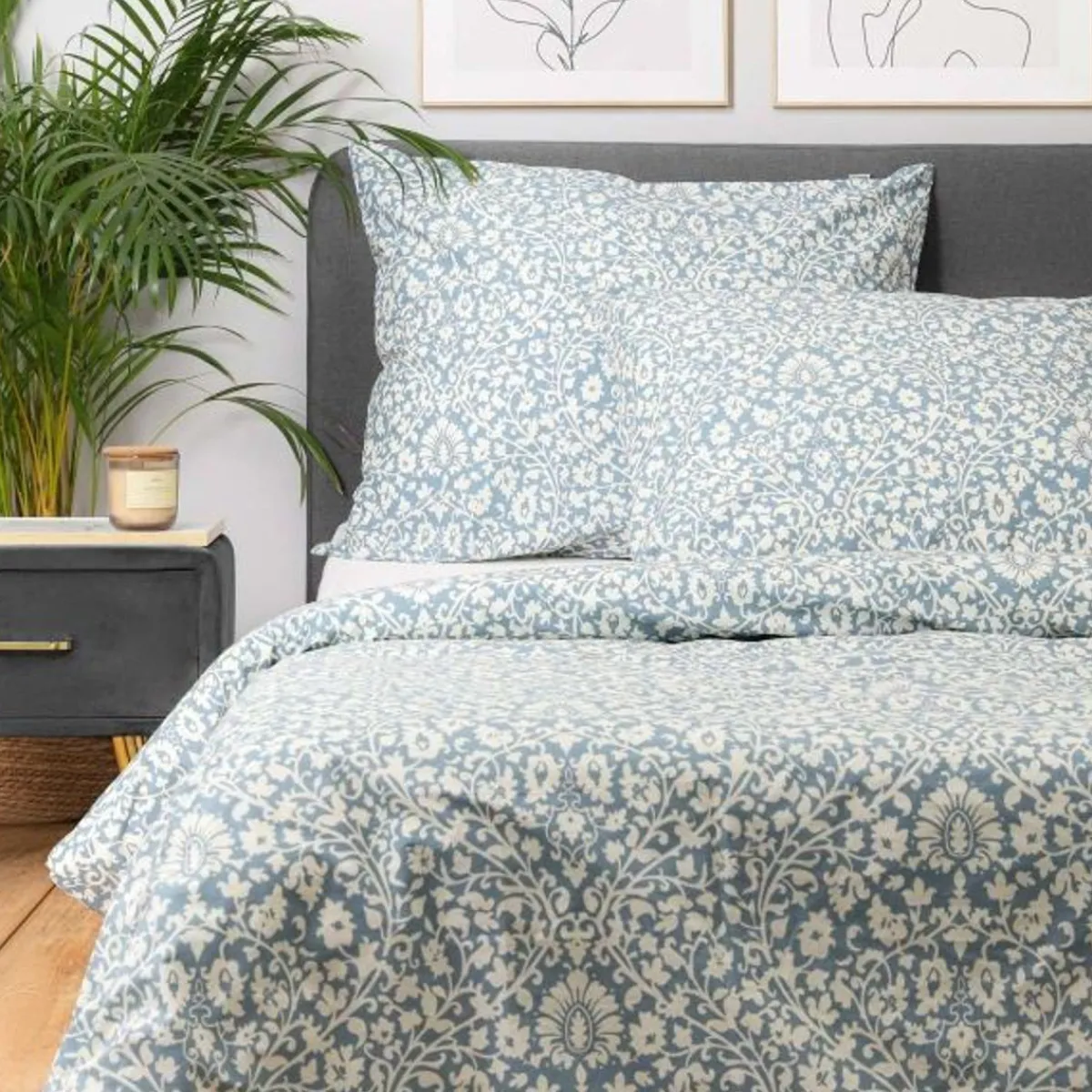 - Piękny Biało-Niebieski Wzór Podkreśla Spokój W Sypialni