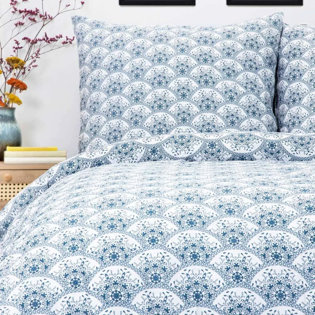 Opis Produktupościel Haven Bawełniana Biała W Granatowy Wzór 220X200 Cm