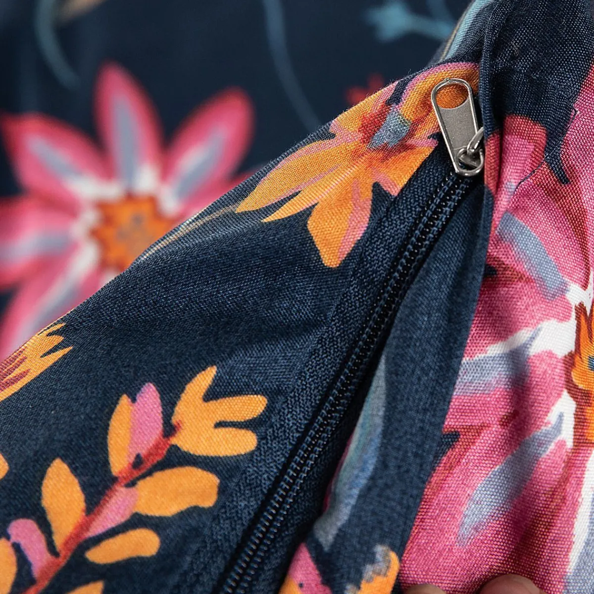 Opis ProduktuPrzeznaczenieKomplet Pościeli We Wzór Vabel To Produkt Dla Wielbicieli Elementów Dekoracyjnych Bogatych W Różnorodną Kolorystykę. Połączenie Żywych, Dobrze Grających Ze Sobą Kolorów Wraz Z Kwiecistym Motywem Doskonale Podkreśli Aranżacje Zachowane W Stylu Eklektycznym. Cechy CharakterystyczneKomplet Pościeli Vabel To Piękne Zgranie Kolorów Motywu Wraz Z Główną Barwą Produktu. W Całości Granatowa Pościel Została Udekorowana O Liczne Kwiaty O Bogatym Zasobie Kolorów, Kształtów Oraz Wielkości. W Skład Kompletu Wchodzi Poszewka Na Kołdrę O Wymiarach Równych 200X220 Cm Oraz Dwie Poszewki Na Poduszkę Noszące Wymiary 70X80 Cm. Pościel Zamykana Jest Przy Pomocy Zamka Błyskawicznego. MateriałMateriał Jaki Został Wykorzystany Podczas Produkcji Kompletu Z Linii Vabel, To 100% Poliester. Cechami Charakterystycznymi Dla Surowca Jest Wysoka Odporność Na Uszkodzenia Mechaniczne, Promienie Słoneczne Oraz Plamy. Dzięki Tym Cechą Produkt Posłuży Przez Długie Lata Nie Tracąc Na Jakości. Zalecana Się Pranie W Temperaturze Nieprzekraczającej 60°C.