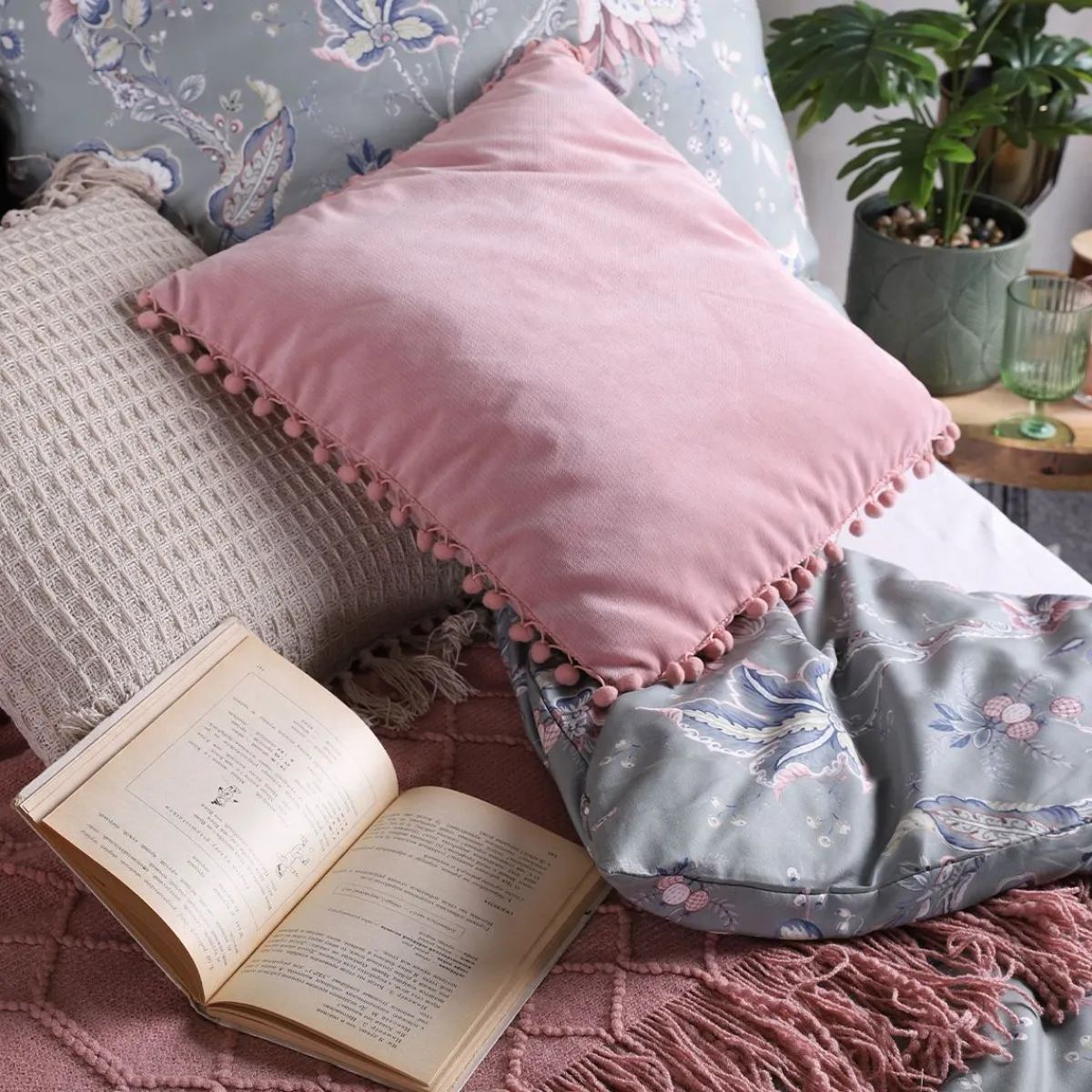 HOMLA Poszewka Eslov Rozowa Z Pomponami 45X45 Cm
