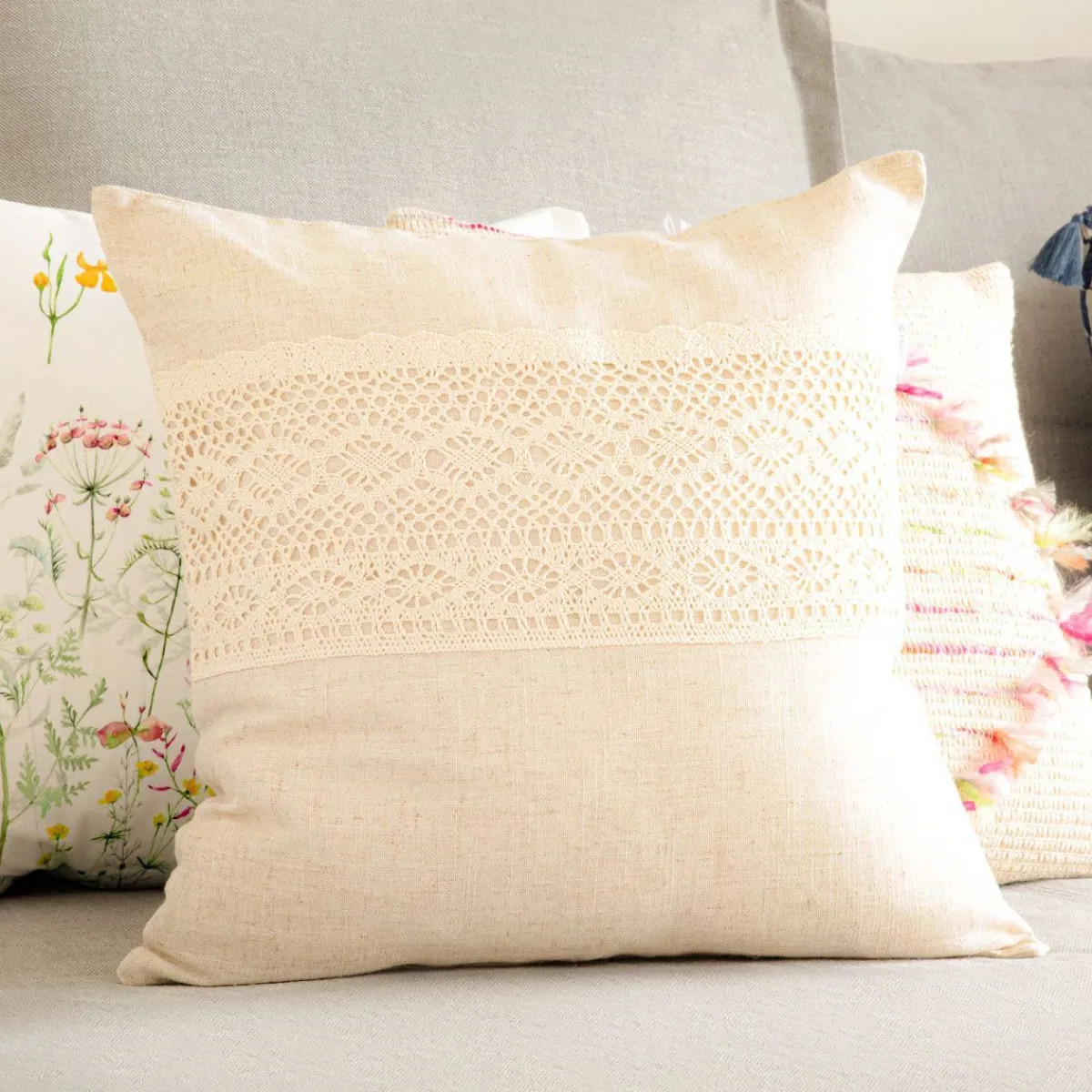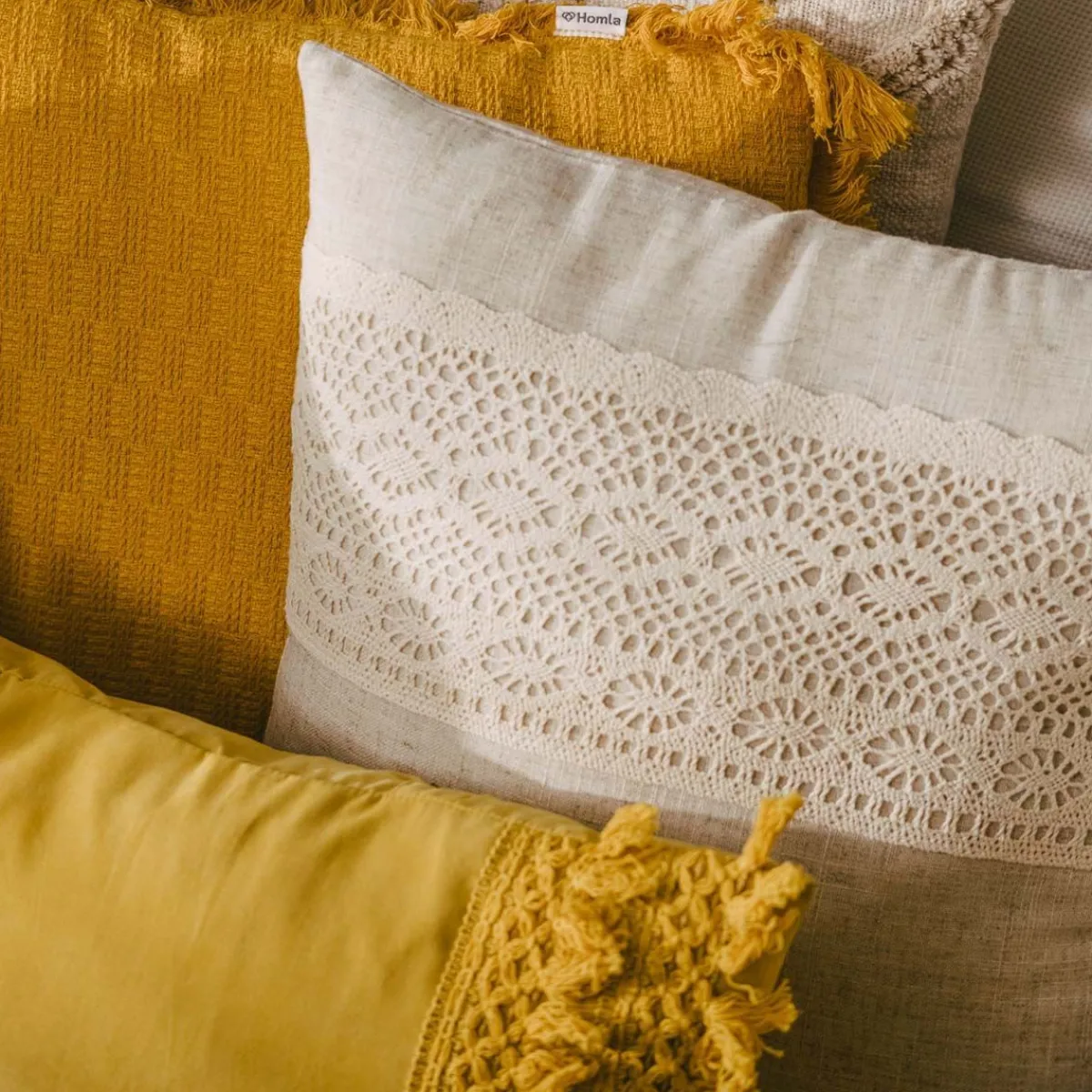 HOMLA Poszewka Renda Bezowa Z Koronka 45X45 Cm
