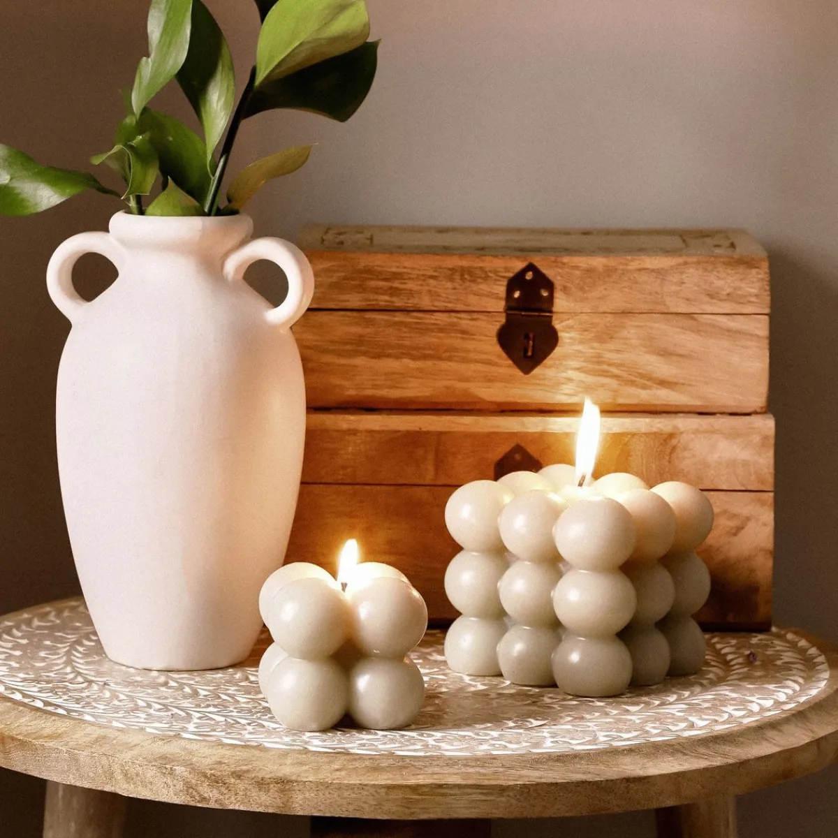 HOMLA Swieca Bubble Bezowa 6X6X6 Cm