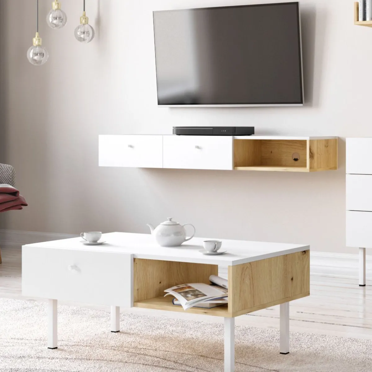 Połączenie Funkcjonalności I Designu, Który Doskonale Pasuje Do Wnętrz W Stylu Skandynawskim, Nowoczesnym Oraz Klasycznym. Szafka Homla Carini Pod Telewizor Zawieszony Na Ścianie Ułatwi Zachowywanie Porządku W Salonie Lub Pokoju Telewizyjnym. W Szufladach Znajdzie Miejsce Wiele Drobiazgów, Na Szafce Ustawisz Dekodery, Sprzęt Audio I Różne Dekoracje.Cechy Charakterystyczne