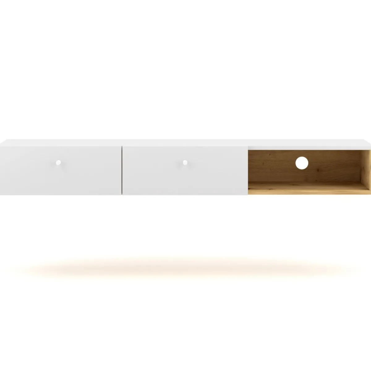 Szafka Prezentuje Się Wspaniale Dzięki Stylowemu Połączeniu Bieli Z Kolorem Naturalnego Drewna. W Półce Został Fabrycznie Wycięty Otwór Na Kable, Dzięki Czemu Łatwo Połączysz Niezbędny Osprzęt Z Telewizorem.Materiał