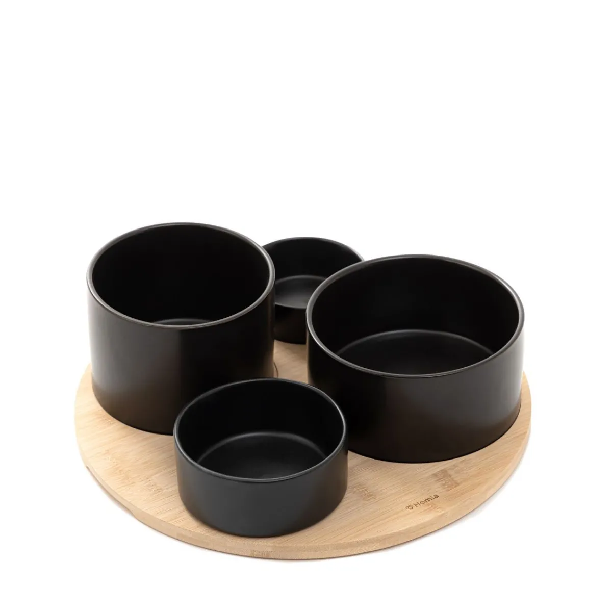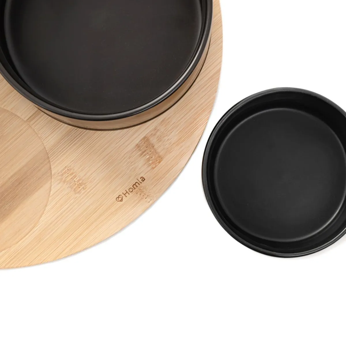 Zestaw Czarnych Miseczek Na Bambusowej Desce