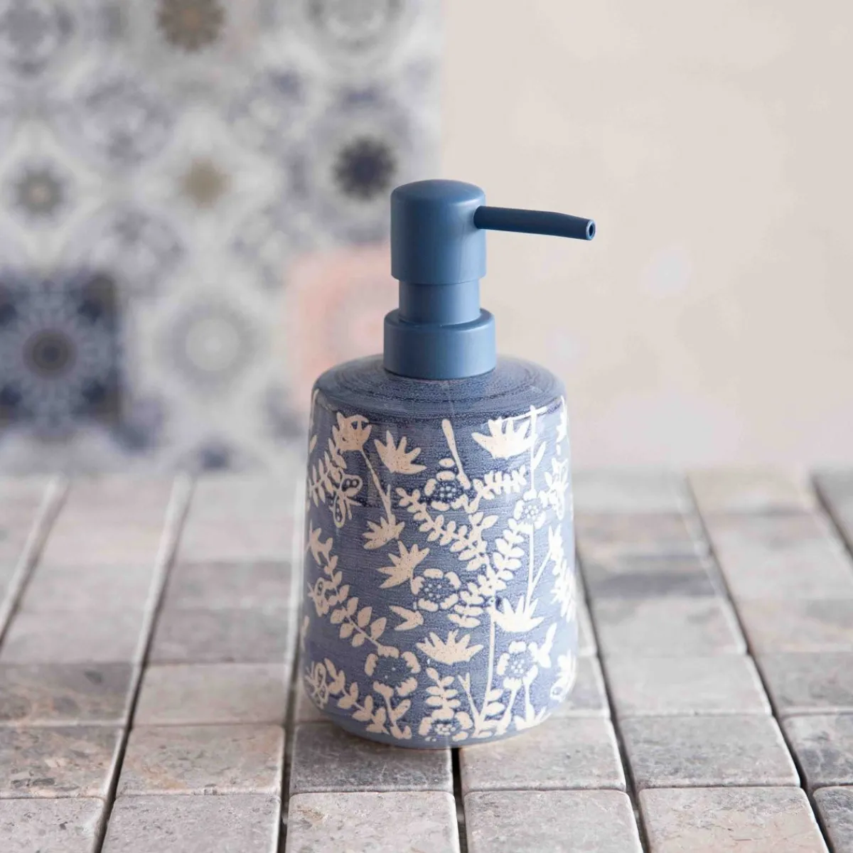 HOMLA Dozownik Mirabel Niebieski We Wzory 8.5X8.5X17 Cm