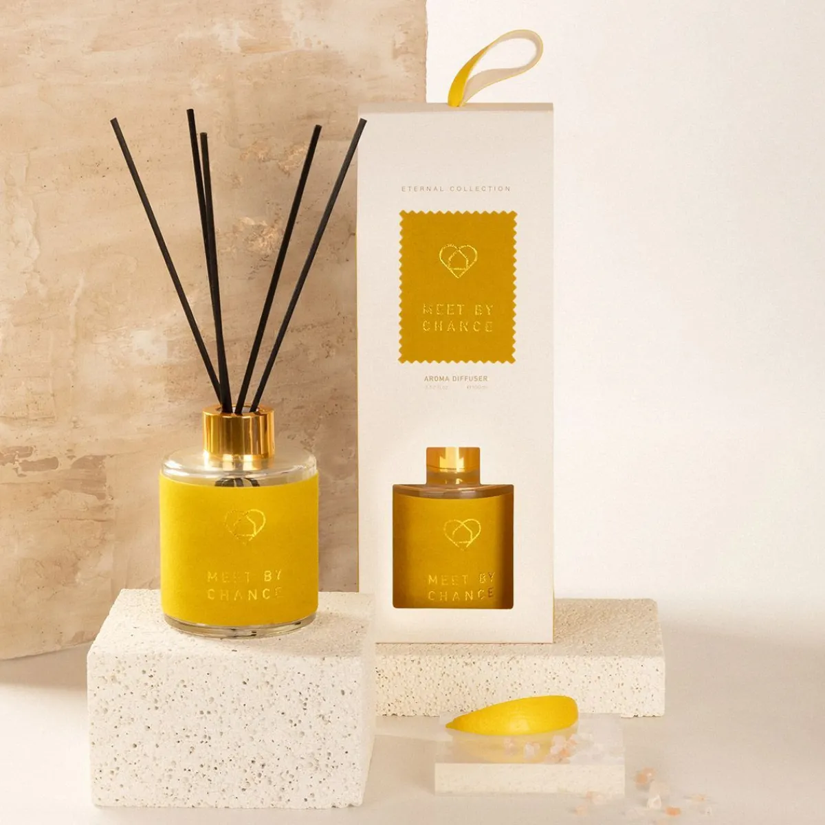 Dyfuzor Eternal Meet By Chance To Elegancki Dyfuzor Z Patyczkami, Który Zachwyca Estetyką I Zapachem. Mocna Kolorystyka Produktu – Opakowanie Utrzymane Jest W Musztardowym Odcieniu Żółci – Pasować Będzie Zarówno Do Wnętrz Boho, Jak I Do Nowoczesnych Aranżacji.Cechy Charakterystyczne
