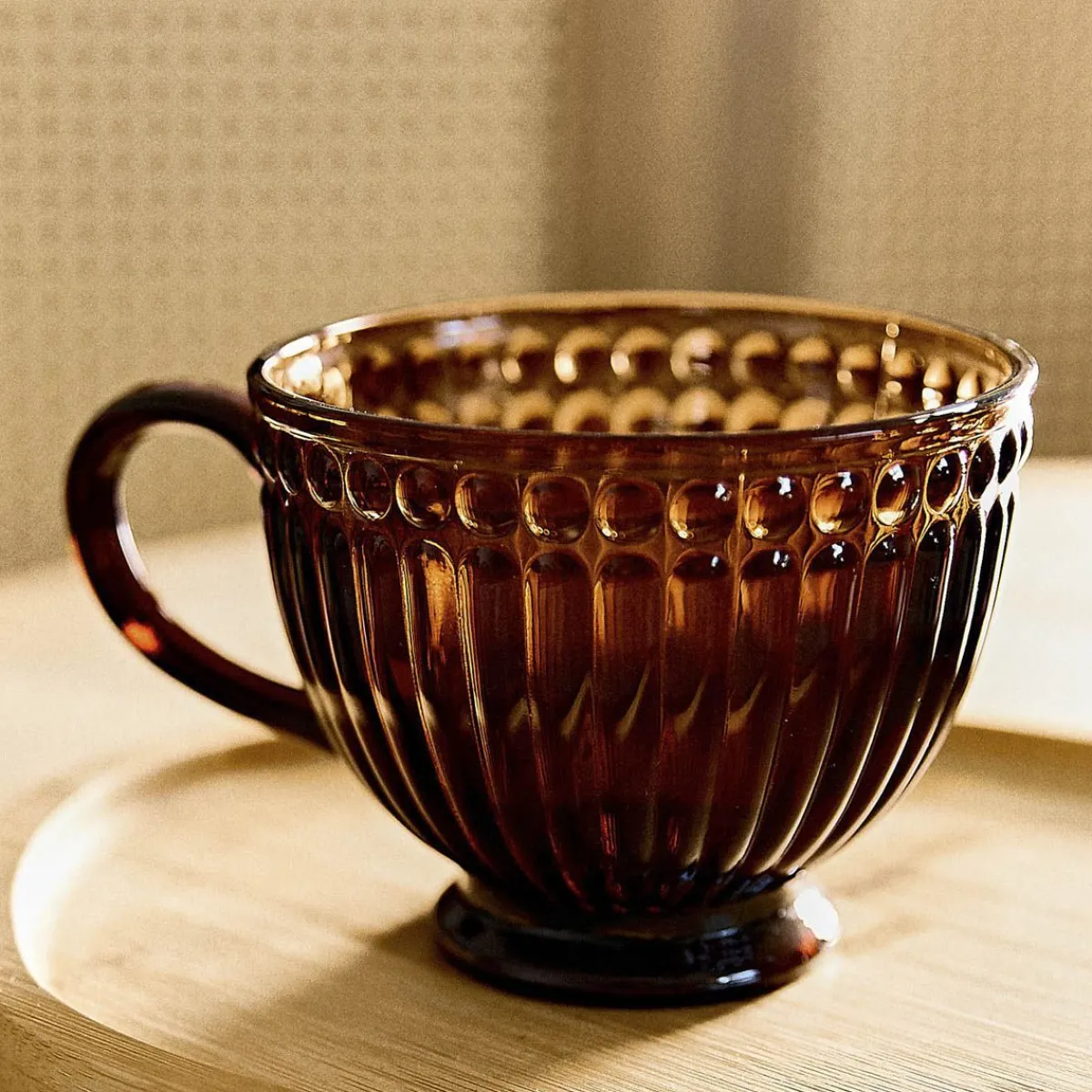 - Pięknie Zdobione Szkło W Bursztynowym Odcieniu