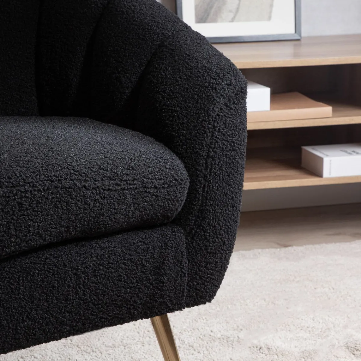 Fotel Reika Został Wykonany Z Przyjemnej W Dotyku Tkaniny Boucle, Która Charakteryzuje Się Tym, Że Jest Miękka I Ciepła. Drewniana Rama I Metalowe Nogi Zapewniają Meblowi Stabilną Konstrukcję.Informacje Dodatkowe: