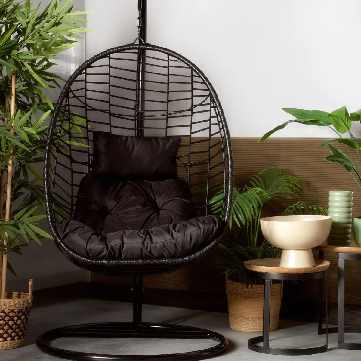 Czarny Fotel Wiszący Do Ogródu Z Poduszkami