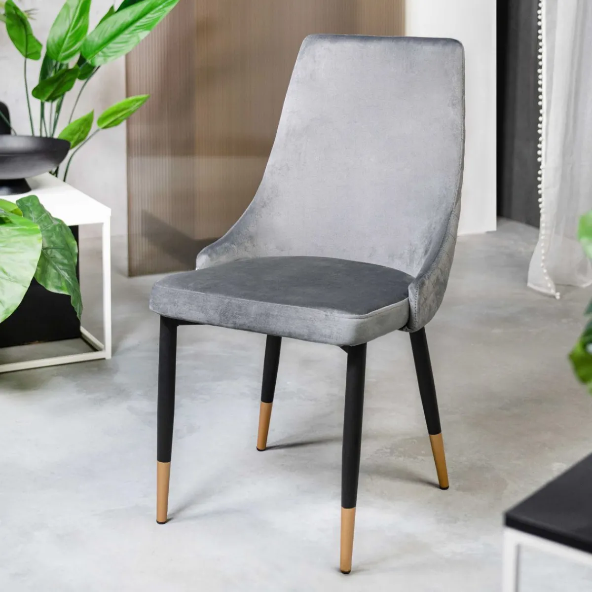 Opis ProduktuPrzeznaczenie Krzesło Logan Szare To Elegancki Dodatek Do Wnętrz O Każdej Stylistyce. Najbardziej Pasować Będzie Do Wystroju O Lekkim Zabarwieniu Glamour, Jednak Utrzymanym W Stonowanych Kolorach. Welurowa Faktura Tkaniny Obiciowej W Kolorze Chłodnej Szarości Podkreśla Jego Szykowny Charakter, A W Nogach Tworzy Się Spójna Kompozycja Czerni I Złota. Cechy Charakterystyczne Nowoczesne Krzesło Logan To Wyjątkowe Połączenie Eleganckiej Prostoty Z Wyrafinowanym Elementem – Złotymi Nogami. Szerokie Siedzisko I Wygięte, Zwężające Się Ku Górze Oparcie Podtrzymywane Są Przez Cztery Proste Nogi O Okrągłym Przekroju. Najbardziej Rzucającym Się W Oczy Elementem Ozdobnym Są Symetryczne Pikowania W Kształcie Rombów, Które Pokrywają Całą Zewnętrzną Powierzchnię Oparcia. Welurowe Krzesło Logan Ma Wymiary 44X44X92 Cm. MateriałMebel Obity Został Welurową Tkaniną W Odcieniu Chłodnej Szarości. Dzięki Temu Jest Wytrzymały Na Przecieranie Się, A Także Łatwo Go Wyczyścić – Wystarczy Przemyć Wilgotną Szmatką. Metalowe Nogi Podkreślają Industrialny Charakter Produktu.