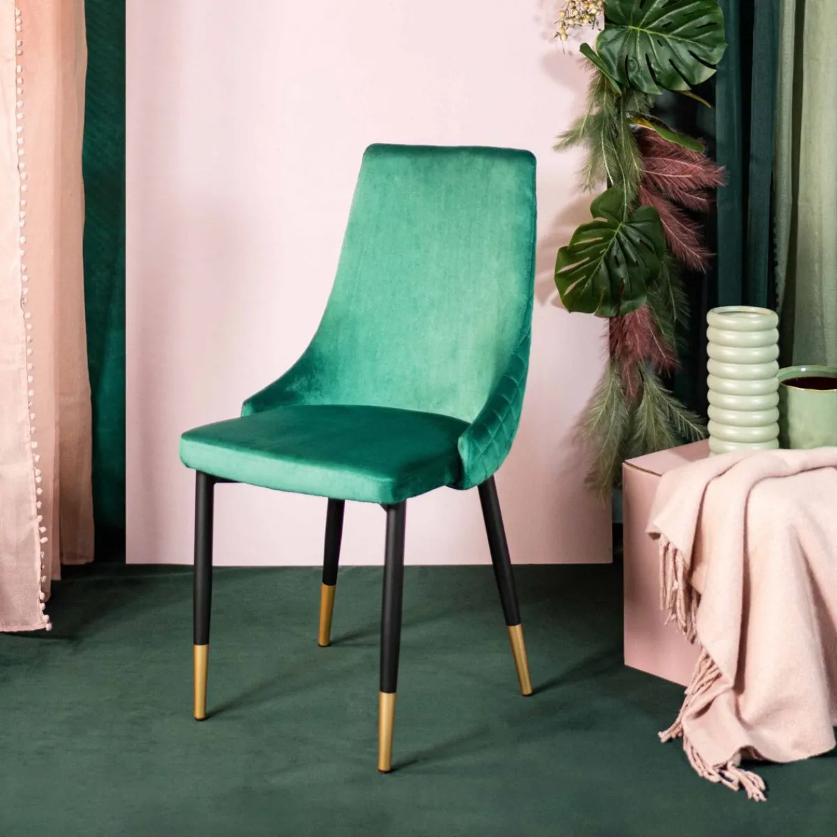 Opis ProduktuPrzeznaczenie Jeśli Marzy Ci Się Nieoczywiste, Lecz Wciąż Stonowane Połączenie Kolorystyczne W Granicach Prostej Elegancji, Na Pewno Spodoba Ci Się Krzesło Logan Zielone. Ozdobne Pikowania Na Zewnętrznej Części Oparcia Spójnie Komponują Się Z Wyszukaną Kolorystyką – Połączeniem Złota, Czerni Oraz Wyraźnego, Szmaragdowego Odcienia Zieleni. Mebel Podkreśli Charakter Glamour Wszystkich Wnętrz Zbudowanych Na Bazie Minimalizmu. Cechy Charakterystyczne Nowoczesne Krzesło Logan Opiera Się Na Czterech Prostych, Zwężających Się Ku Dołowi Nogach, Które Podkreślają Lekkość Kompozycji. Wyprofilowane Oparcie Zostało Ozdobione Symetrycznymi Pikowaniami W Kształcie Rombów Po Zewnętrznej Stronie – Dzięki Czemu Zdobienie Zawsze Jest Widoczne. Welurowe Krzesło Logan Ma Wymiary 44X44X92 Cm. MateriałMebel Obity Został Welurową Tkaniną W Odcieniu Szmaragdowej Zieleni. Dzięki Temu Jest Wytrzymały Na Przecieranie Się, A Także Łatwo Go Wyczyścić – Wystarczy Przemyć Wilgotną Szmatką. Metalowe Nogi Podkreślają Industrialny Charakter Produktu.