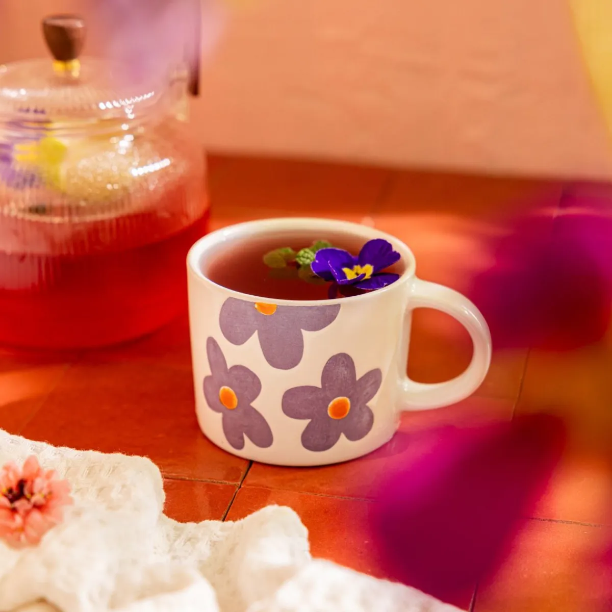 HOMLA Podkladka Melte Ceramiczna Kwiaty Roz Pomarancz Blekit 4 Szt.