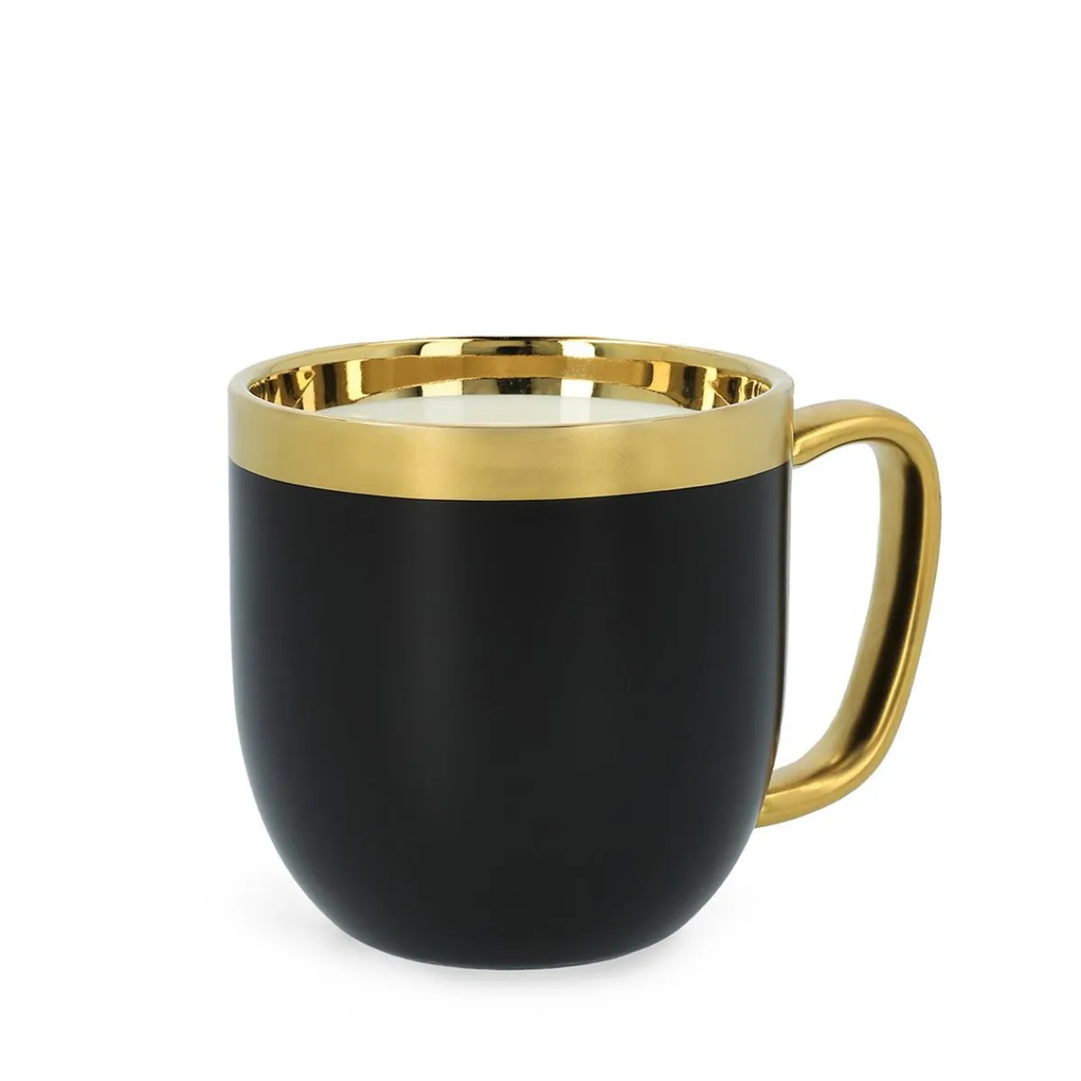 Połączenie Matowo Czarnej, Gładkiej Powierzchni Ze Złotymi Połyskującymi Elementami Tworzy Klasyczne, Ale Jednocześnie Wyszukane Zestawienie. Dodatkowo, Do Zestawu Dołączono Stylową Łyżeczkę, Która Wyróżnia Się Delikatnym, Obłym Kształtem – Dzięki Czemu Cały Zestaw Nabiera Miękkości Formy. Produkt Posiada Ergonomiczny Kształt I Wyprofilowane Ucho, Co Sprawia, Że Doskonale Leży W Dłoni.Pojemność Kubka Wynosi 280 Ml.