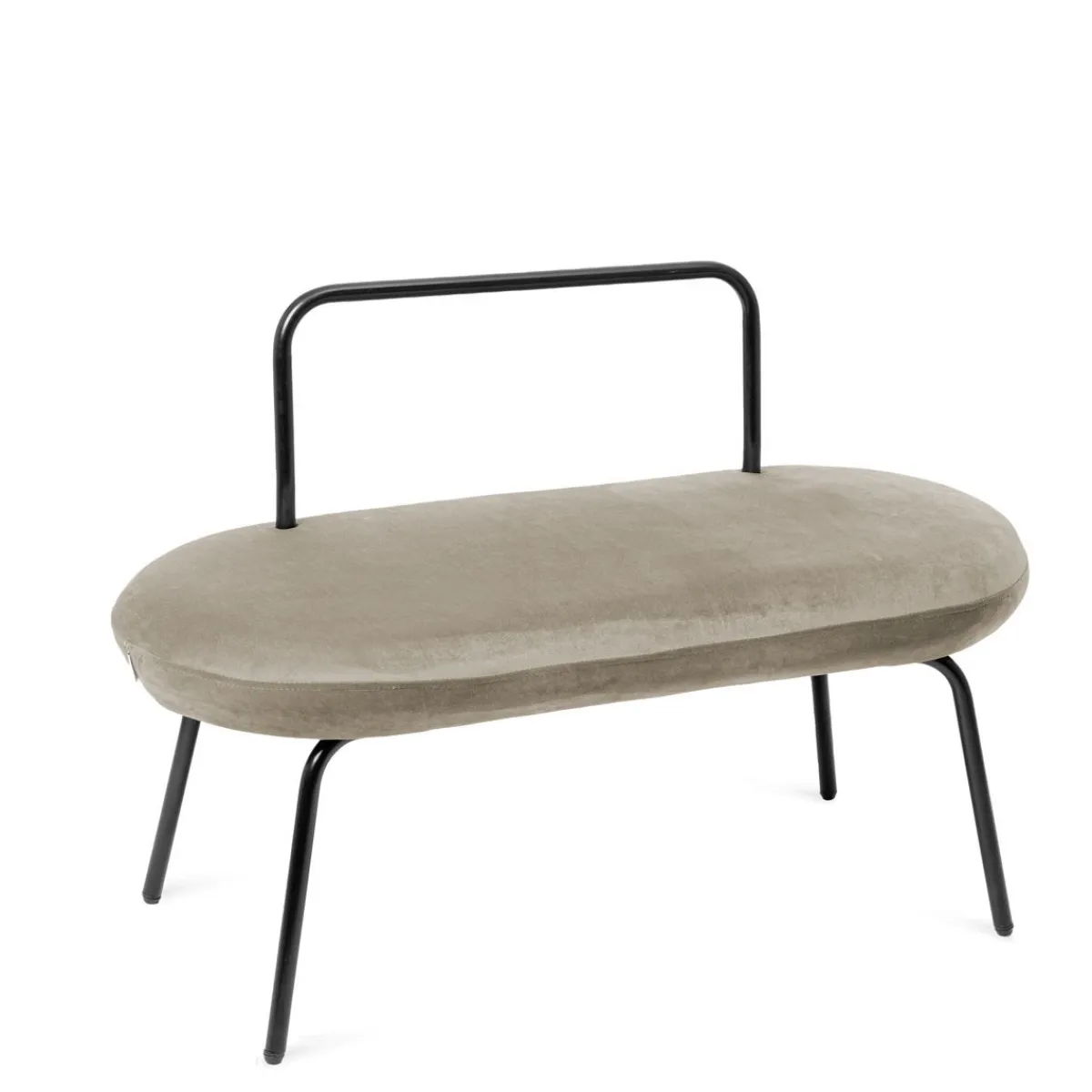 Ławka Ma Owalny Kształt. Nowoczesny Wygląd Zawdzięcza Połączeniu Tapicerki Z Miękkiego, Mieniącego Się Weluru Oraz Elementów Metalowych W Kolorze Czarnym. Wygodna, Stabilna, Łatwo Ją Przenosić I Ustawiać W Różnych Miejscach.Materiał