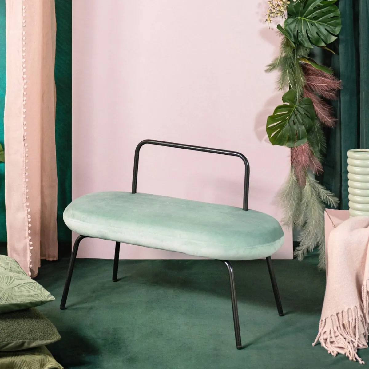 Ławka Wyróżnia Się Owalnym Siedziskiem, Bazującym Na Wytrzymałej Płycie Mdf, Z Przyjemną W Dotyku Welurową Tapicerką. Jest Meblem, Którego Wymiary Oraz Waga Zapewniają Łatwość Przenoszenia I Przesuwania, Nie Zajmuje Wiele Miejsca W Mieszkaniu. Kształt Siedziska Współgra Z Kształtem Oparcia I Profilem Nóżek. Nogi Posiadają Stopki Z Tworzywa, Chroniące Podłogę Przed Porysowaniem.Materiał