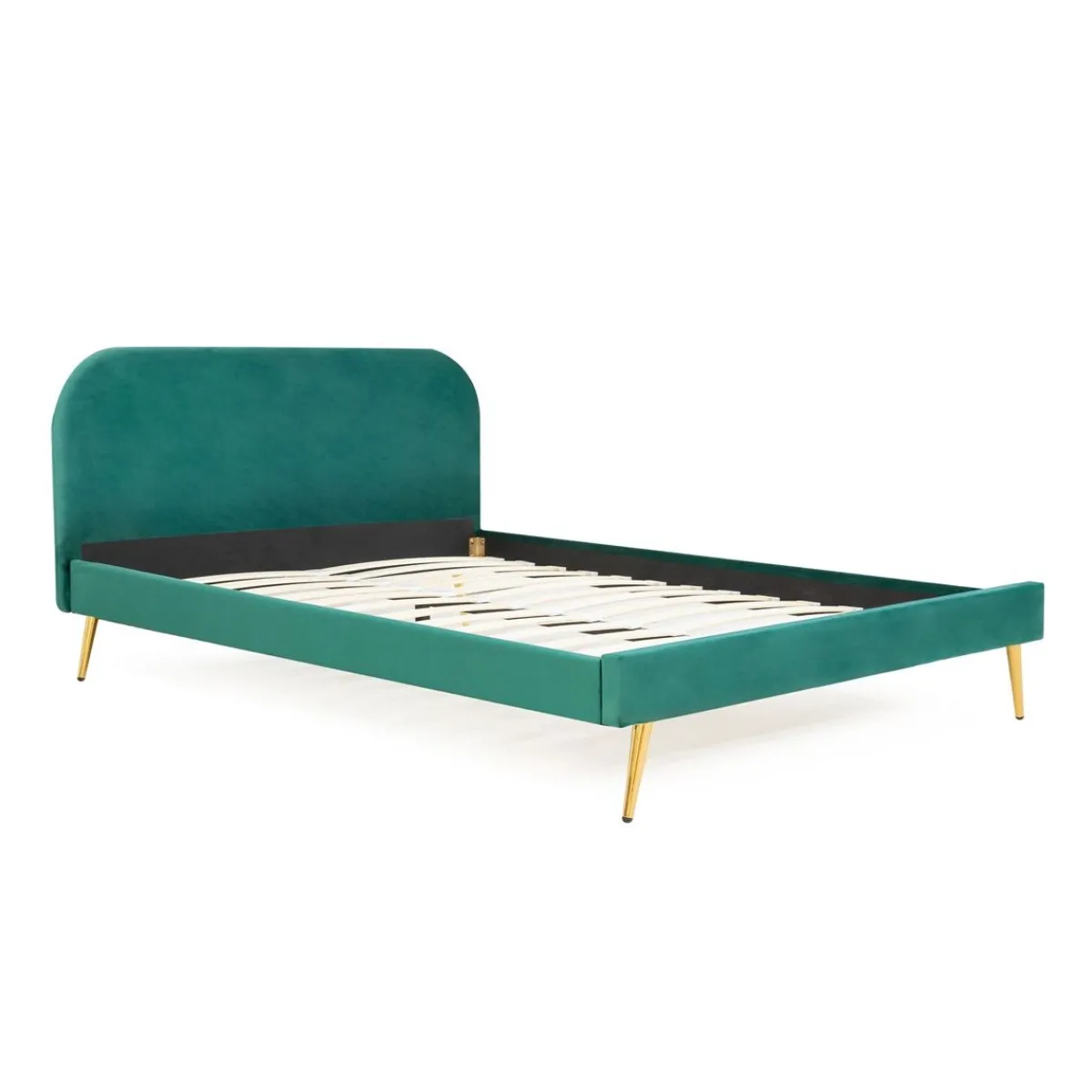 Tapicerka W Odcieniu Butelkowej Zieleni, Którą Pokryta Jest Rama, Będzie Wyrazistym Przełamaniem Do Wnętrza Utrzymanego W Jasnej Kolorystyce. Efektywny Element Stanowią Złote, Połyskujące Nogi. Łóżko O Wymiarach 160X200 Cm Doskonale Spełni Funkcję Małżeńskiego.Materiał