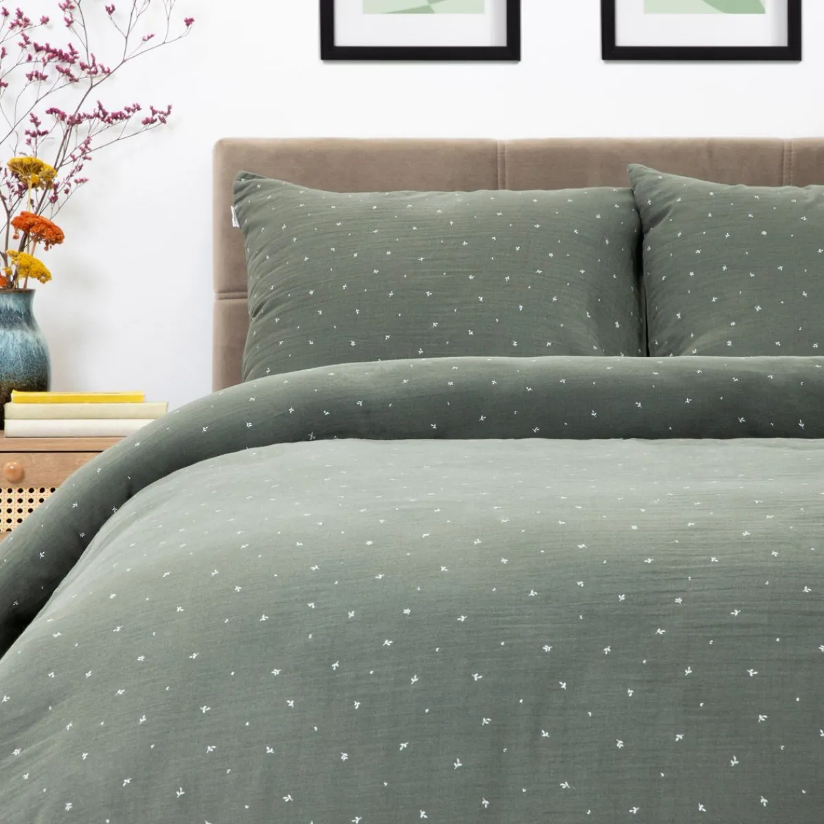 - Delikatny Wzór W Białe Listki, Które Pięknie Łagodzą Ciemną Zieleń