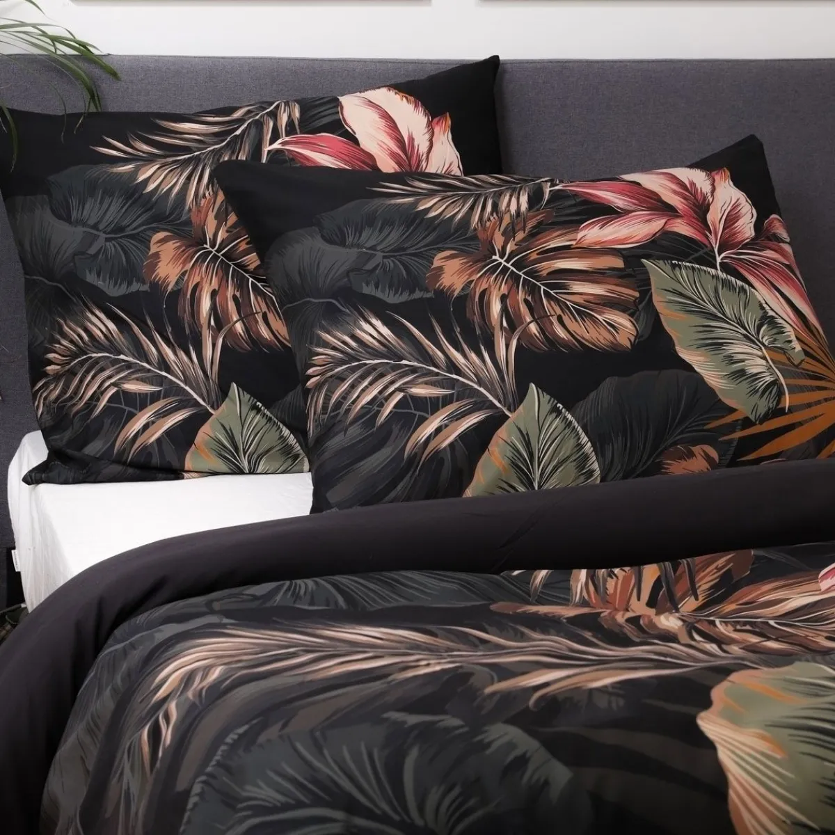 HOMLA Pościel Fonce Z Mikrofibry Czarna W Liscie 160X200 Cm