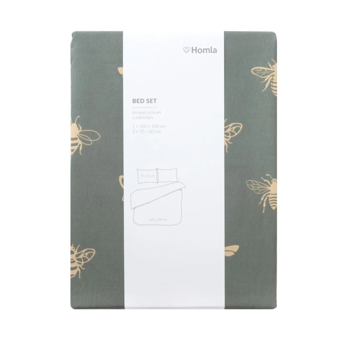 HOMLA Pościel Luro Z Mikrofibry Oliwkowa W Owady 160X200 Cm