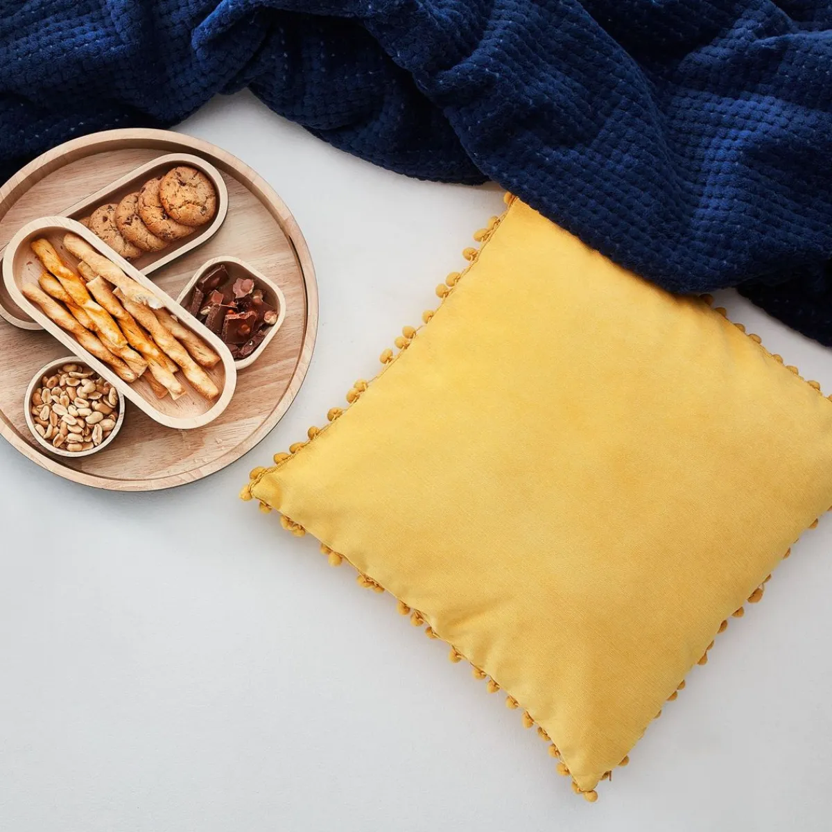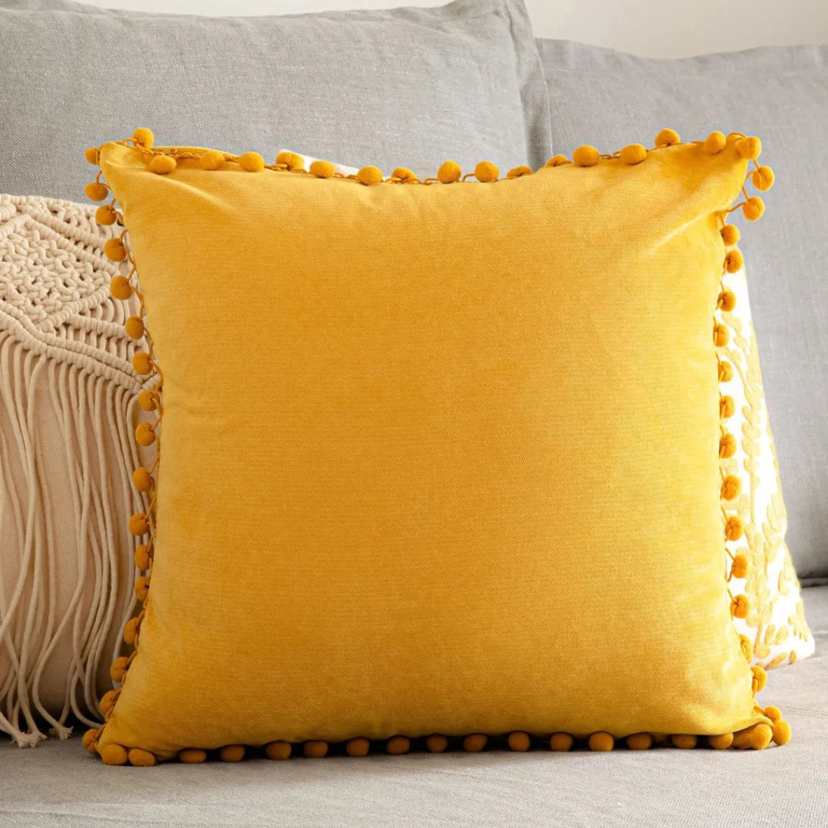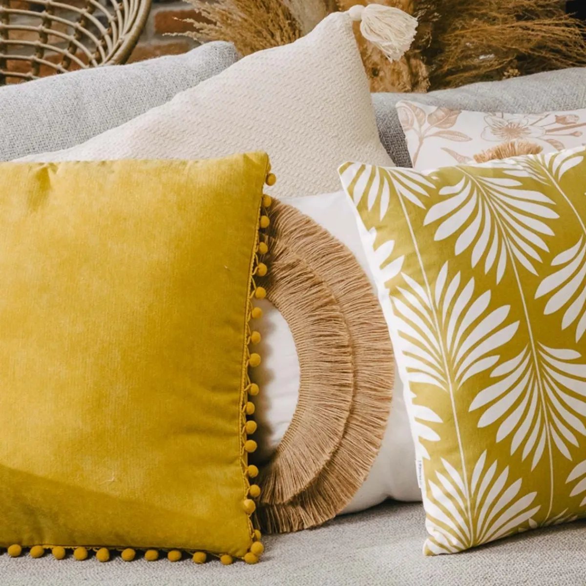 HOMLA Poszewka Eslov Musztardowa Z Pomponami 45X45 Cm