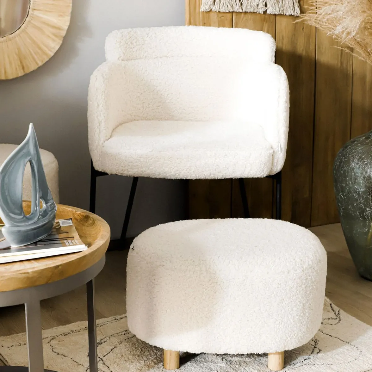 HOMLA Pufa Alda Boogie Bezowa W Tkaninie Teddy 50X40X31 Cm