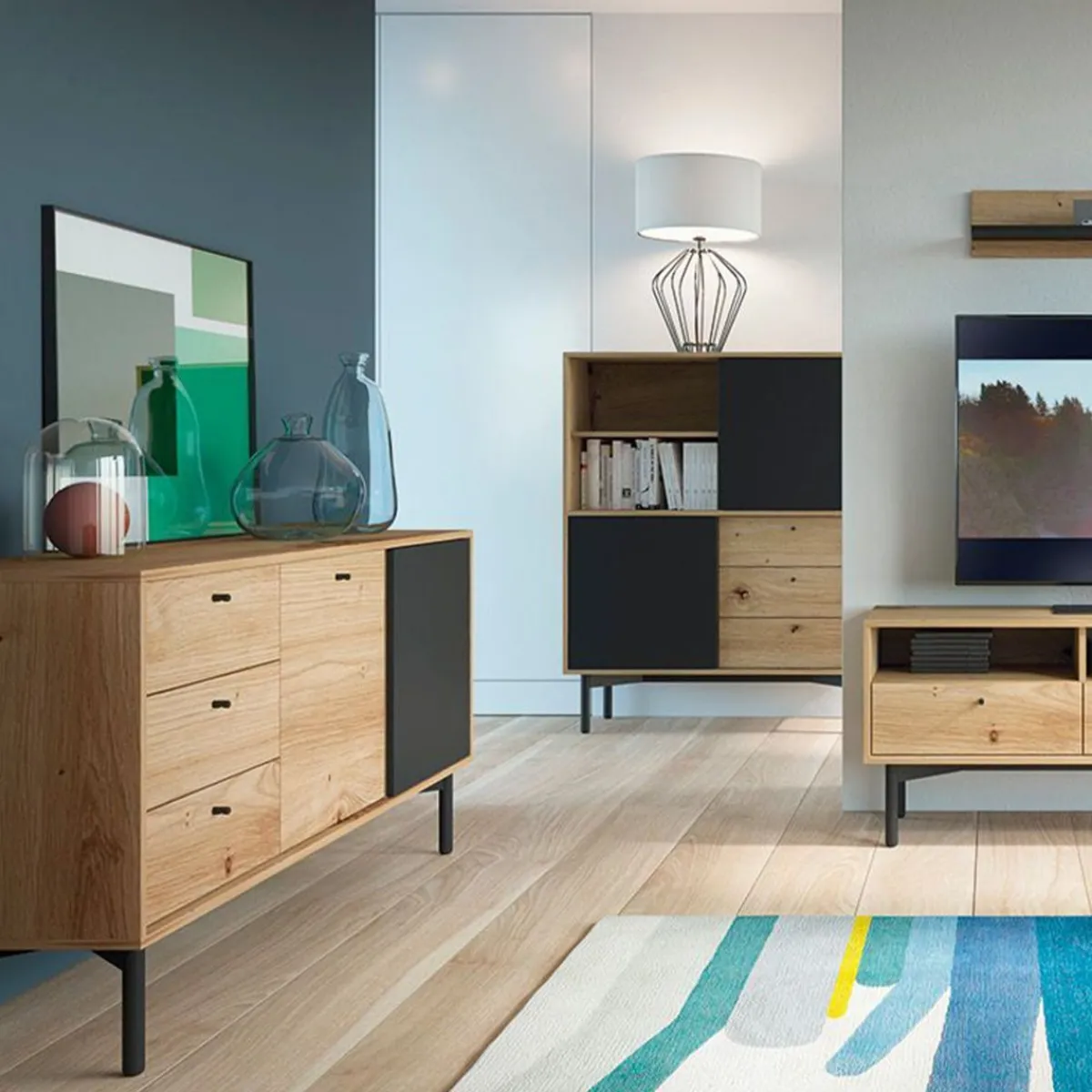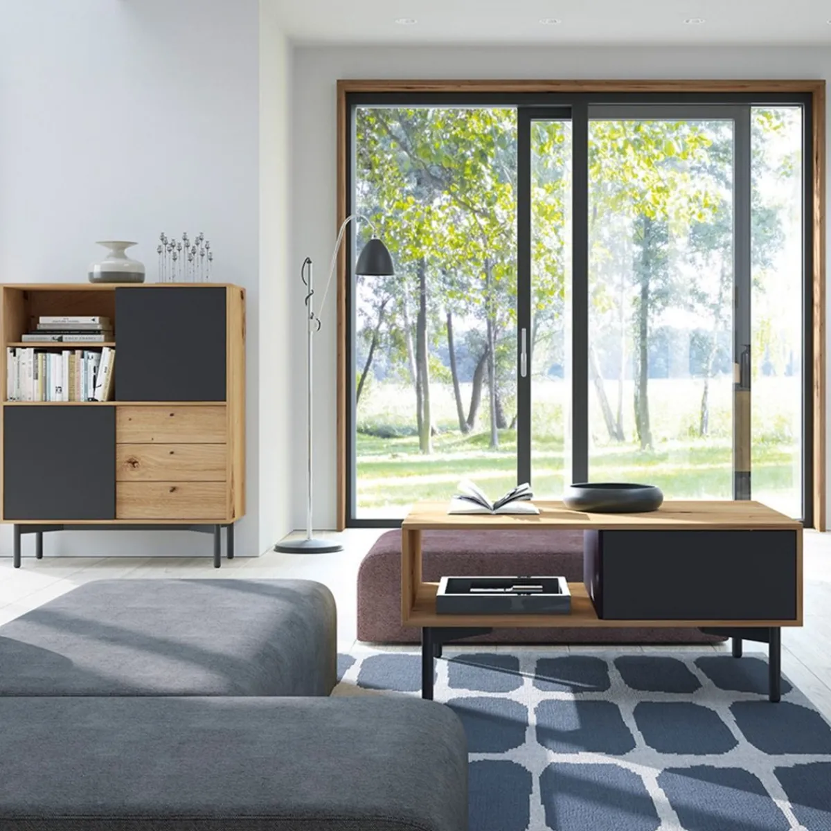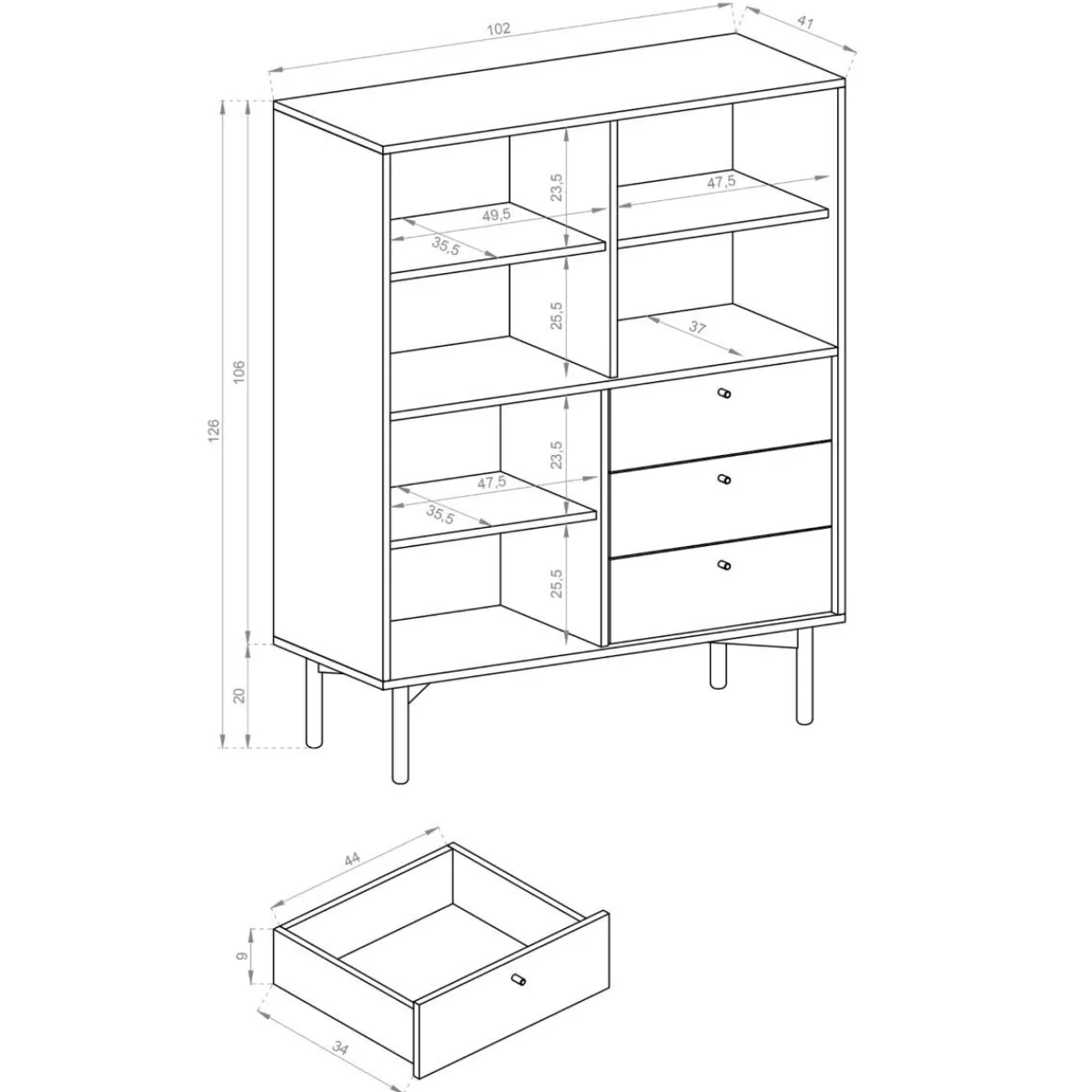 Opis ProduktuPrzeznaczenie Szukasz Produktu, Który Będzie Łączył W Sobie Funkcjonalność I Świetny Wygląd? W Takim Razie Regał Flow To Idealna Propozycja Dla Ciebie. To Świetny Mebel Do Salonu, Zwłaszcza, Jeśli W Twoim Domu Nie Ma Za Wiele Wolnego Miejsca. Produkt Ten Jest Bardzo Pojemny, Dzięki Czemu Pozwoli Ci Efektywnie Zorganizować Przestrzeń. Cechy Charakterystyczne Regał Flow Posiada Dwie Sztuki Drzwi, Trzy Szuflady, Jedną Otwartą Półkę Oraz Dwie Zamknięte Półki. Tworzą One Symetryczny Podział Na Cztery Równe Części. Wymiary Mebla To 102 Cm Szerokości X 126 Cm Wysokości X 41 Cm Głębokości. Produkt Został Utrzymany W Dwóch Kolorach – Czarnym Oraz Naturalnego Drewna. Sprawdzi Się Zwłaszcza W Aranżacjach W Stylu Loftowym. Materiał Korpus Regały Flow Został Wykonany Z Płyty Laminowanej, Dzięki Temu Mebel Jest Odporny Na Działanie Promieni Uv, A Także Nie Przyciąga Do Swojej Powierzchni Kurzu. Okleina Imitująca Dębowe Drewno Posiada Strukturę Sęków. Nogi Wykonane Zostały Z Drewna Pomalowanego Na Czarno.