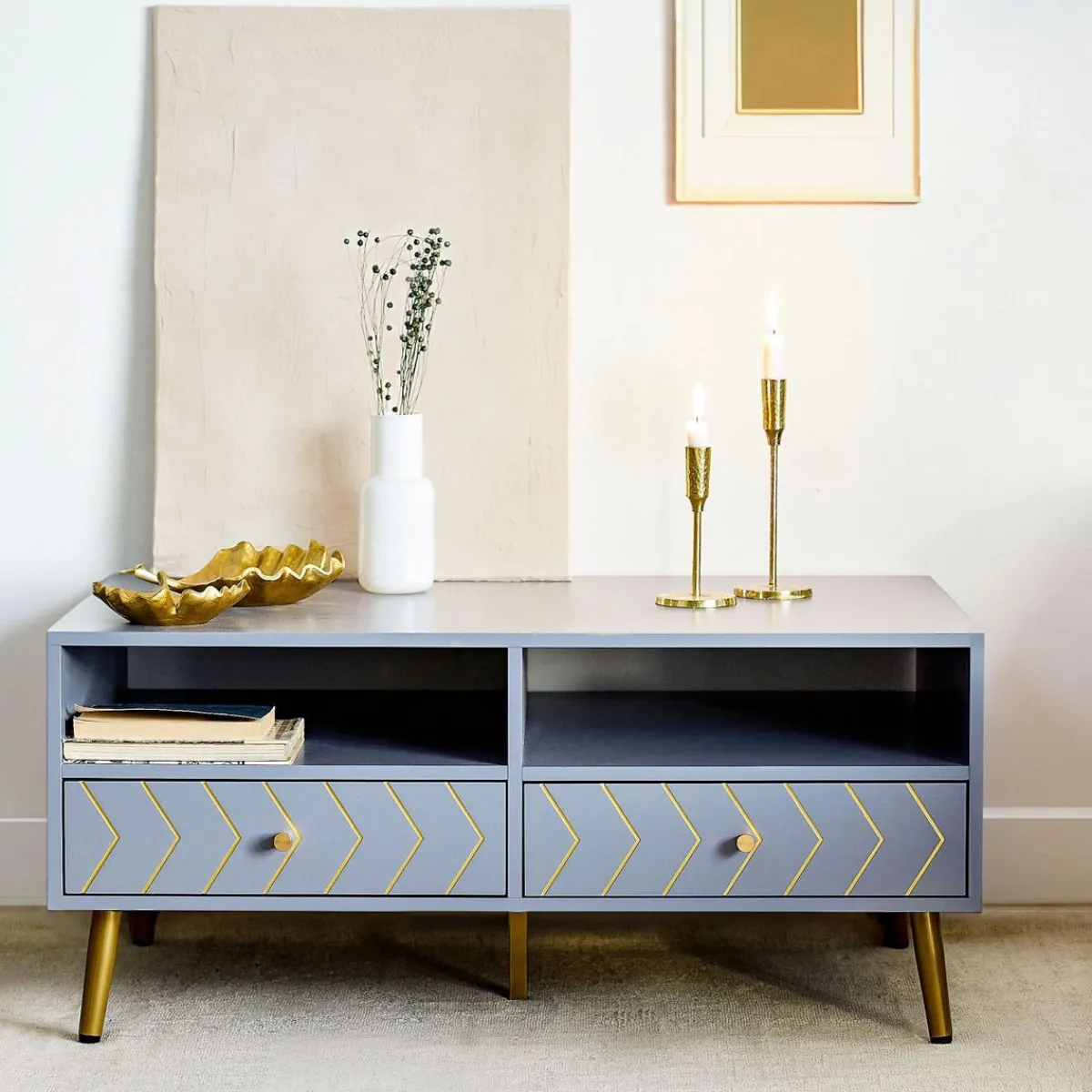 Stolik Kawowy Homla Bodo To Znakomita Propozycja Mebla Do Nowoczesnego Salonu. Pod Dużym Blatem O Powierzchni 100 X 50 Cm Stworzono Wygodną Przestrzeń Do Przechowywania W Postaci 2 Półek Oraz 2 Szuflad. Mebel Osadzony Jest Na Metalowych Nóżkach, Które Zapewniają Mu Stabilność, Jednocześnie Dodając Całej Konstrukcji Lekkości I Elegancji.Przeznaczenie