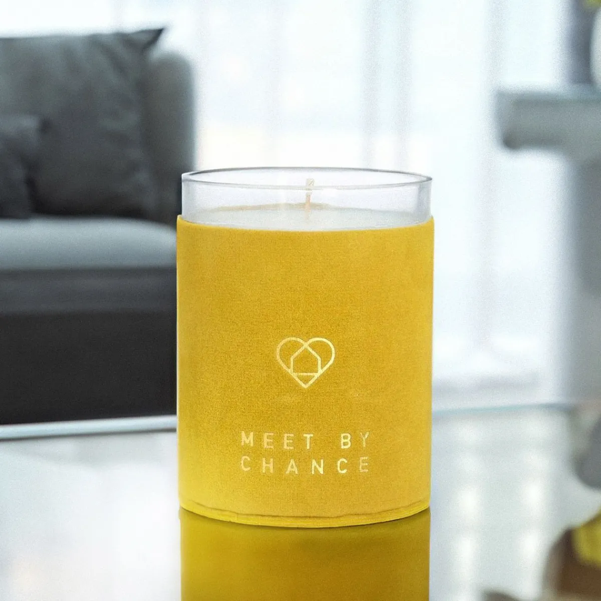 Piękna Kompozycja Aromatów To Nie Jedyny Atut Świec Z Serii Eternal. Mają One Również Starannie Zaprojektowane Opakowania, Dzięki Czemu Są Bardzo Dekoracyjnym Dodatkiem Do Wnętrz. W Przypadku Zapachu Meet By Chance Szklane Naczyńie, W Którym Znajduje Się Parafina Zostało Ozdobione Osłonką W Musztardowym Kolorze, Która Wygląda, Jakby Była Zrobiona Z Zamszu. Otrzymasz Ją W Eleganckim, Tekturowym Opakowaniu, Dzięki Czemu Będzie To Bardzo Uniwersalny Prezent.Cechy Charakterystyczne