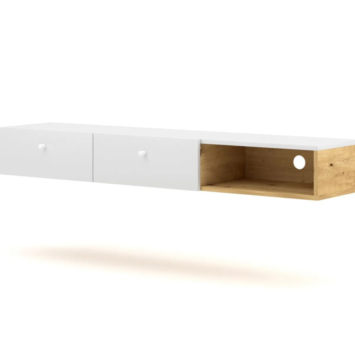 Szafka Prezentuje Się Wspaniale Dzięki Stylowemu Połączeniu Bieli Z Kolorem Naturalnego Drewna. W Półce Został Fabrycznie Wycięty Otwór Na Kable, Dzięki Czemu Łatwo Połączysz Niezbędny Osprzęt Z Telewizorem.Materiał