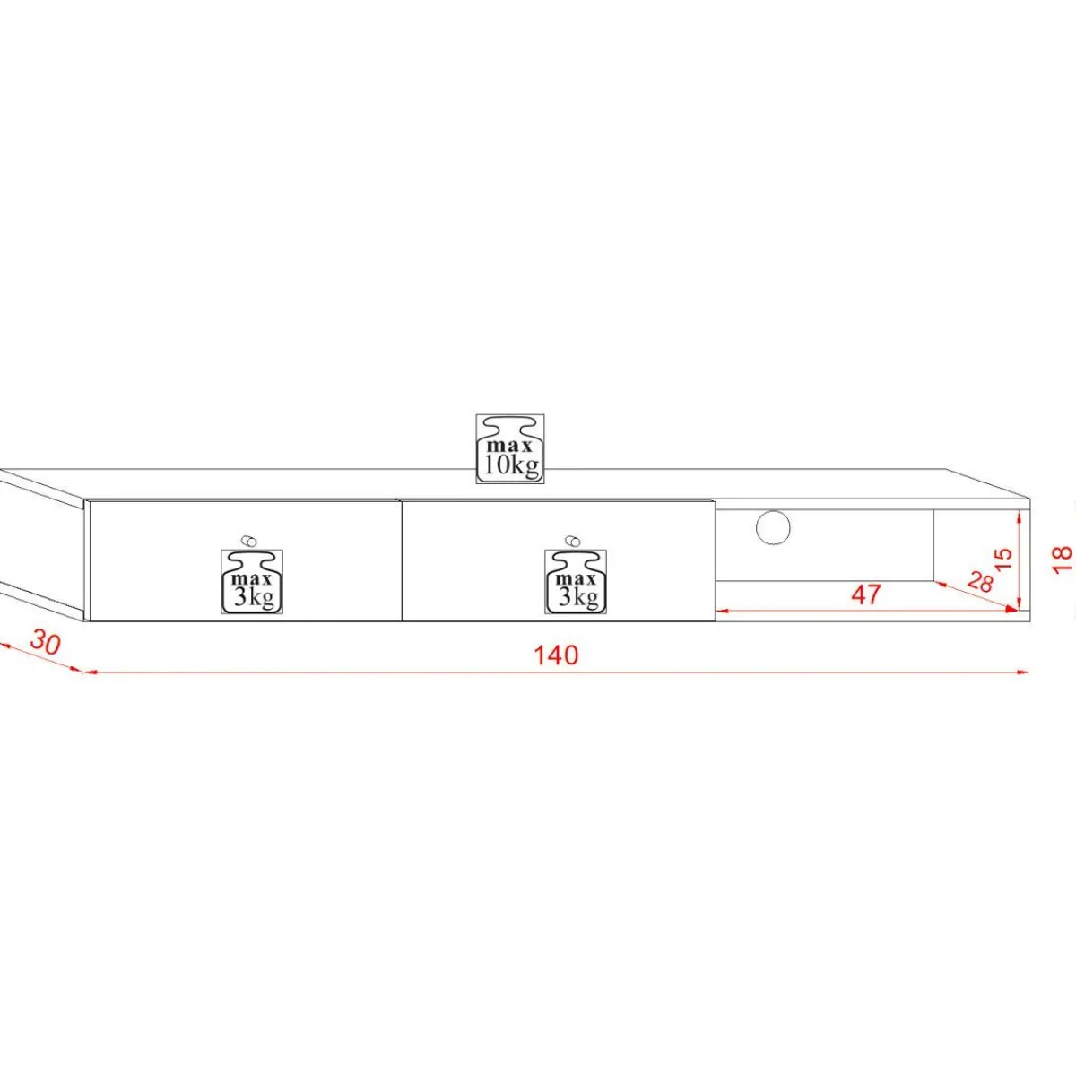 Wymiary Gabarytowe: 140 X 30 X 18 Cm (Szer. X Dł. X Wys.)Wymiary Półki: 47 X 15 X 28 Cm (Szer. X Wys. X Głębokość)