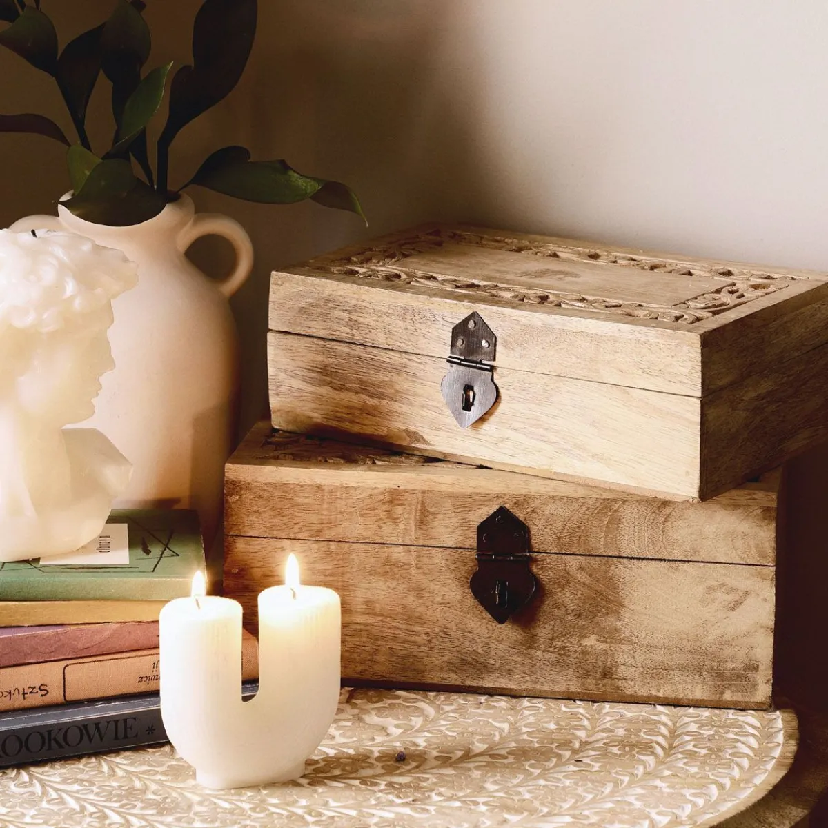 HOMLA Szkatulka Na Bizuterie Sombre Drewniana Zlobiona 22X14X8 Cm