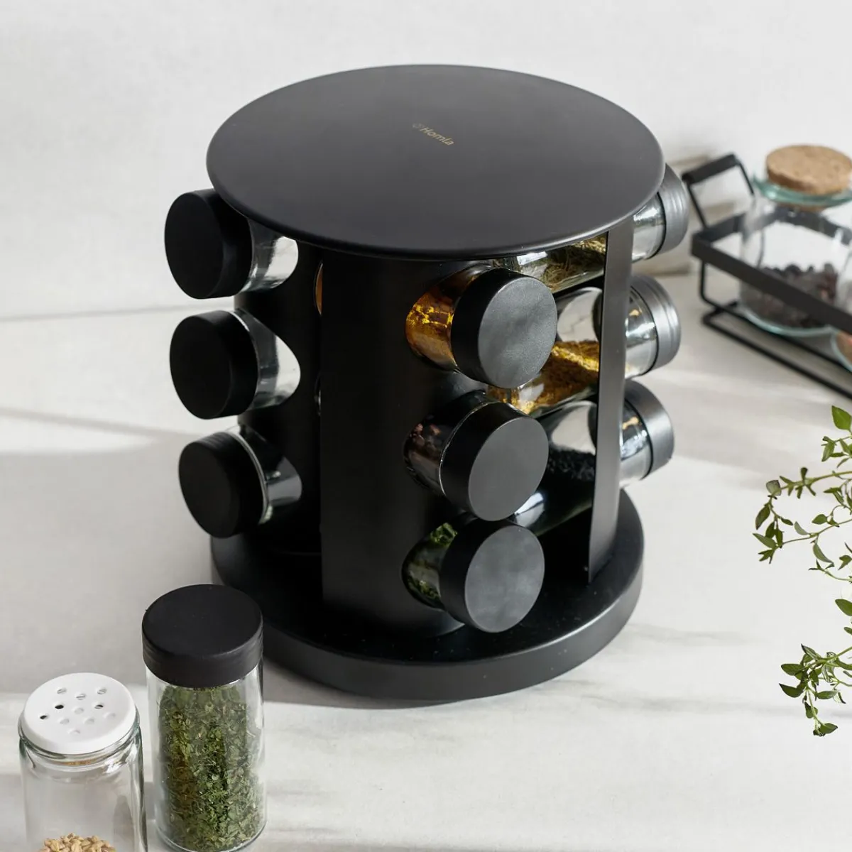 HOMLA Zestaw Przyprawnikow Otto Na Obrotowym Stojaku- 12 Sloiczkow 19X21 Cm