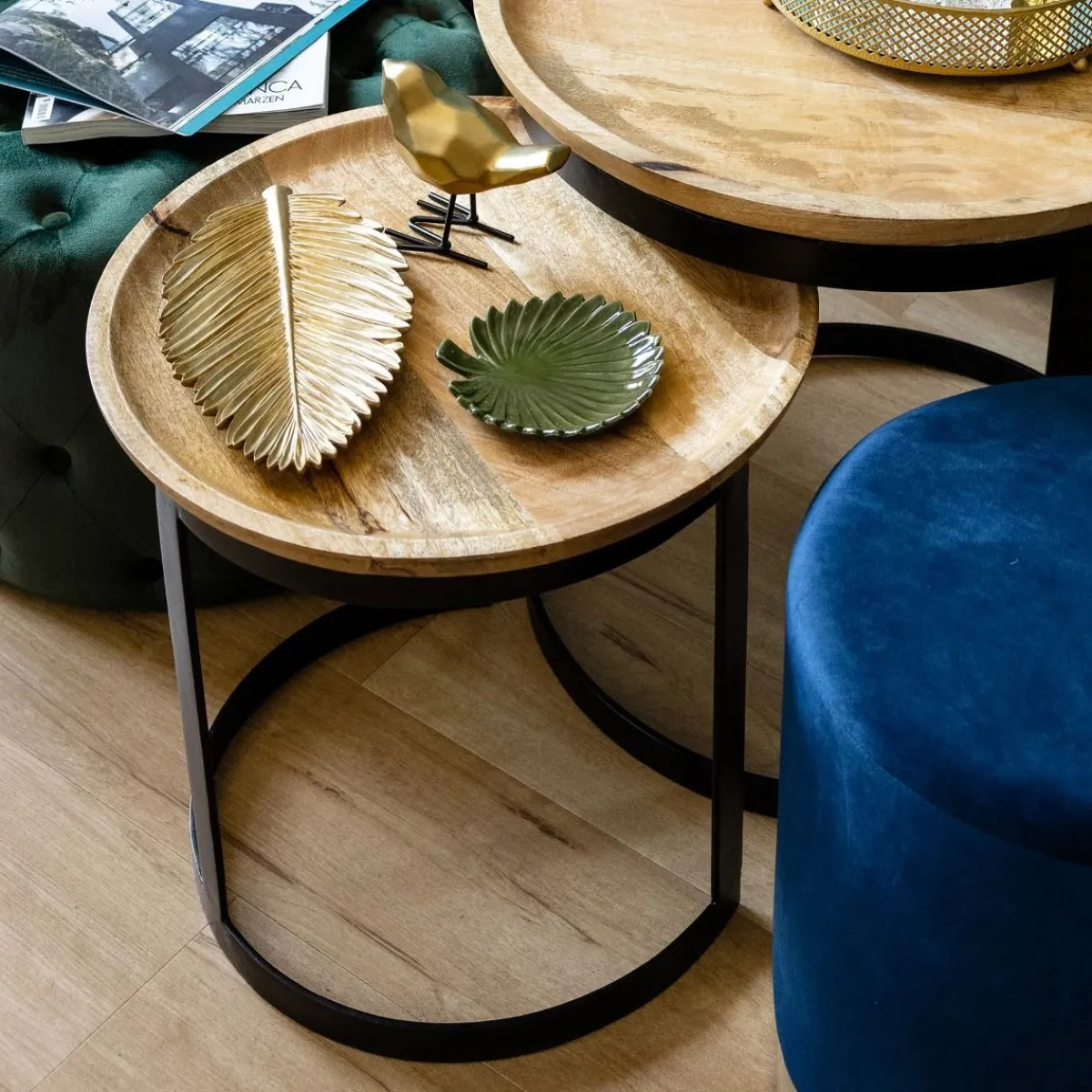 HOMLA Zestaw Stolikow Kawowych Harvey Drewnianych 53X51/43X43 Cm